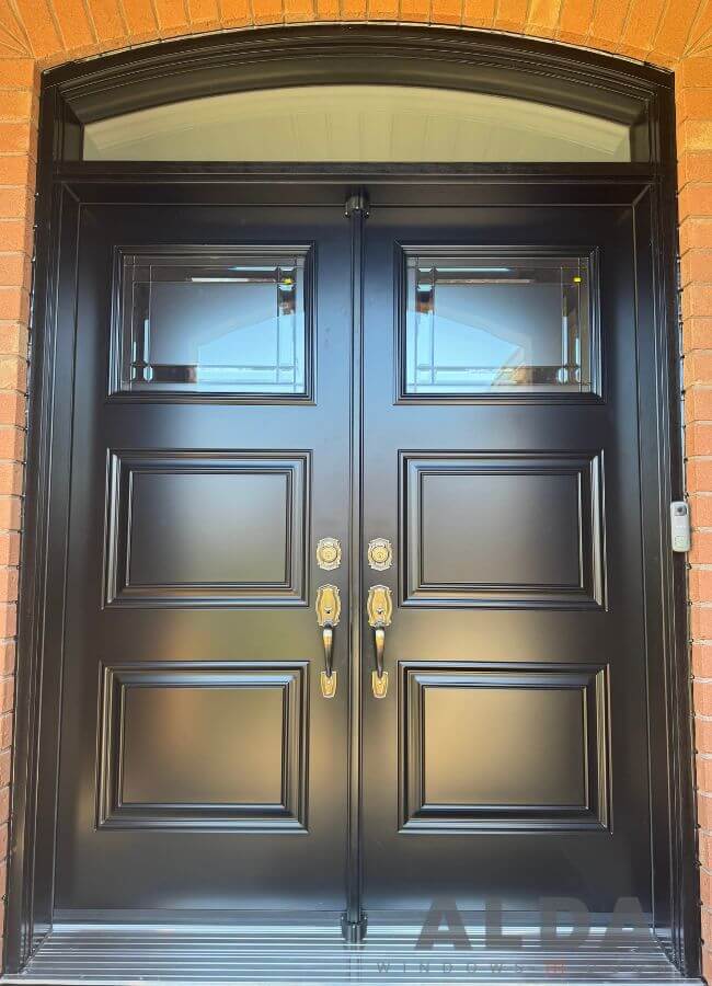 Black Double Entry Door with Arched Transom